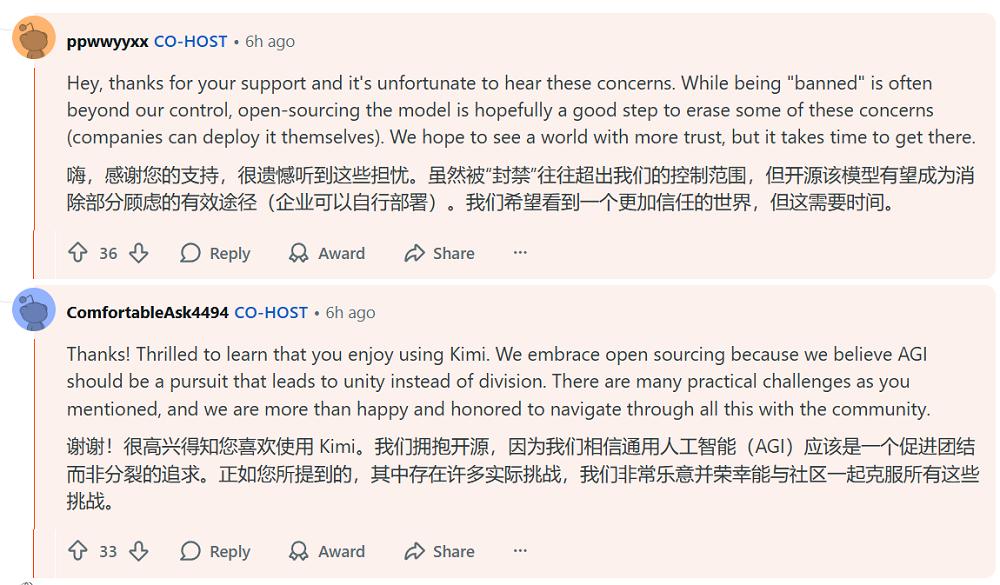 月之暗面此次在Reddit平台的公开问答,集中回应了全球网友对Kimi技术细节的大量兴趣和疑问。这种关注背后,也折射出全球开发者对中国AI创新能力的认可。