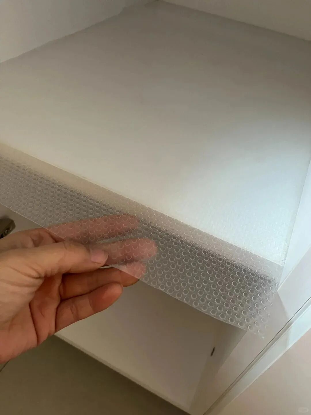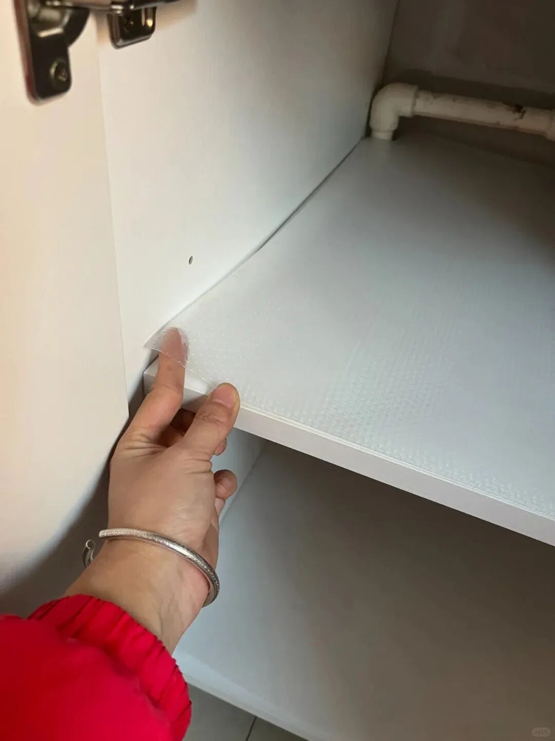 邻居阿姨就在隔板上铺了一个防水垫子,能防水防潮,最主要的是脏了就可以随时拿下来,用水一冲,晾干了再放上去就好了。