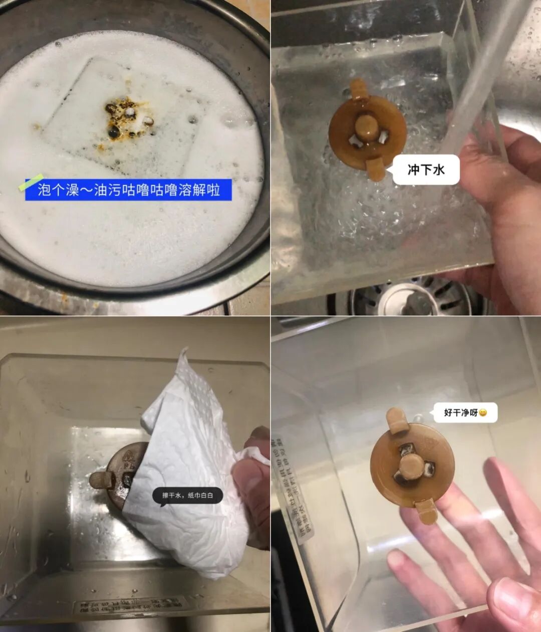 油网的清洁,要是只有少量油污,用肥皂水浸泡后就能洗干净。要是油污严重,就用爆炸盐和热水一起浸泡,再用刷子轻轻刷一刷,立马焕然一新。