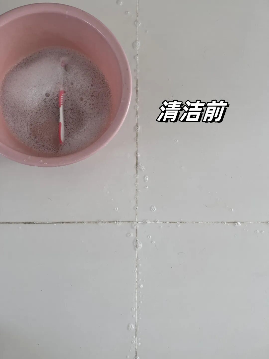 厨房地面瓷砖缝隙里的油污,是最难清洁的,用旧牙刷蘸上洗洁精+苏打粉,沿着缝隙刷,刷完之后再用清水擦干净,瓷砖缝隙立马就干净了。