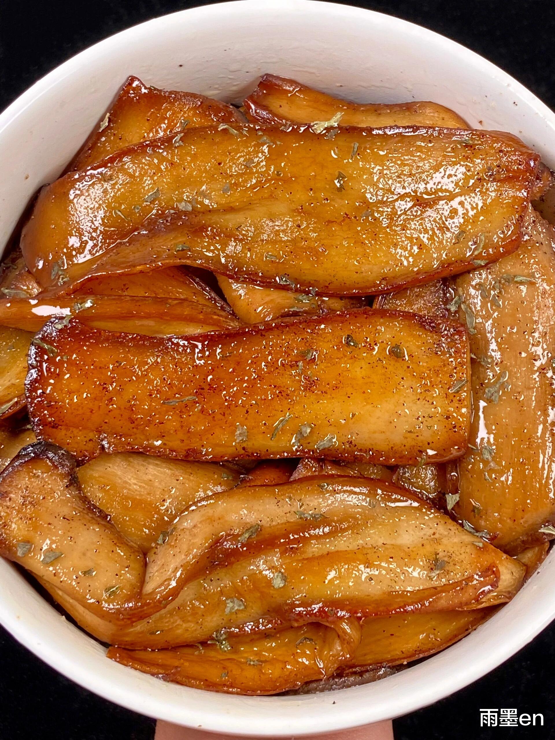 现在每次做这道菜,女儿都会蹲在灶台边喊:"妈妈在煎会跳舞的蘑菇!"金黄的杏鲍菇裹着油亮酱汁,咬开是带着肉汁的鲜嫩,蒜香和黑胡椒在嘴里蹦迪。配着糙米饭吃,清爽又满足,连吃三顿都不腻。