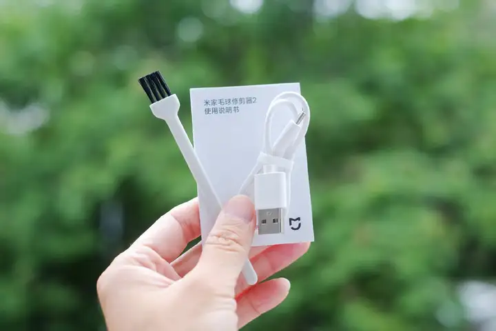 配件除了说明书和充电线外,还附赠了一个小毛刷,用于清理机器,非常的贴心。