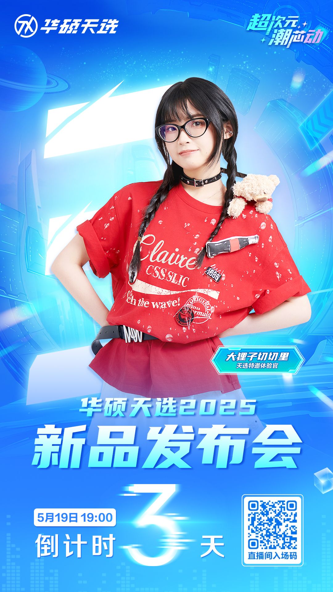 #超次元潮芯动 距离华硕天选2025新品发布会还剩3天!提前锁定B站@华硕天选官方UP 直播间,一同见证本次天选新品的惊