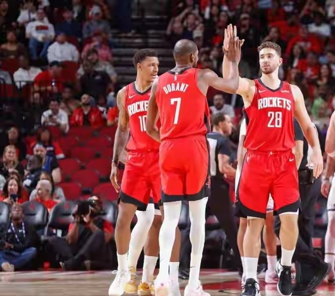 赢下这场比赛后,火箭更是迎来了四个振奋人心的好消息,让球队的冲冠之路更有底气了。第一个好消息就是杜兰特复出即巅峰,完全没需要适应期。回归的第一场比赛,他出战30分钟,14投10中效率高得吓人,轰下25分6篮板4助攻3抢断1盖帽,正负值高达+28。首节命中三分打开局面,次节连中两记三分火力全开,第三节高效收尾后就打卡下班,不仅自己得分稳,还能串联队友盘活全队进攻,妥妥的球队“定海神针”。更值得庆祝的是,凭借本场的10记命中,他的生涯总进球数突破10668个,成功超越英格利什升至历史第11位,距离奥拉朱旺的历史第10也只差81球,后续再突破只是时间问题。