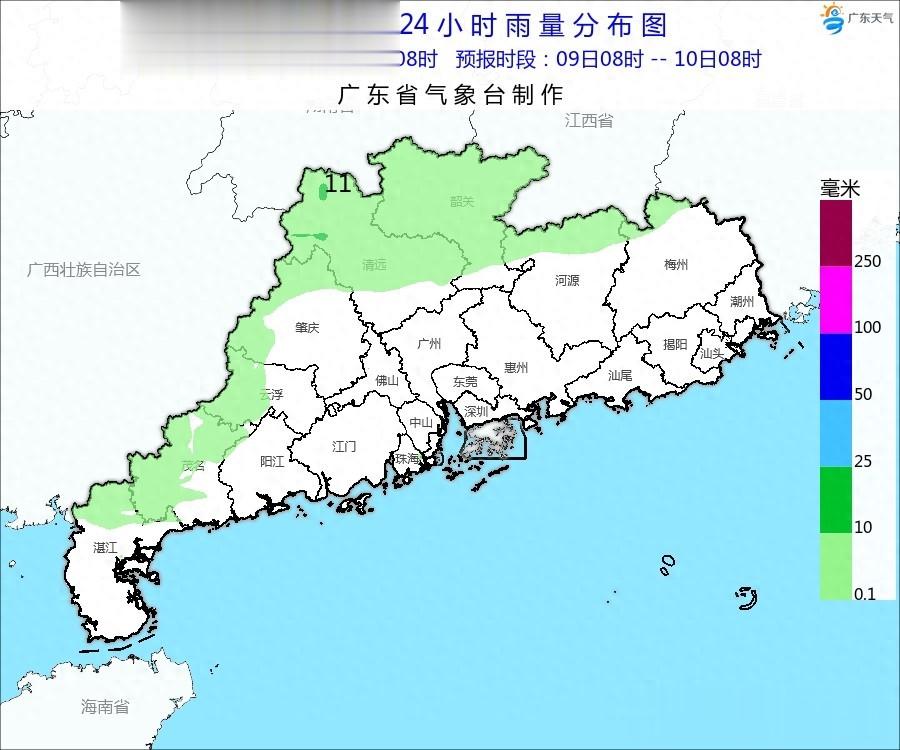 - 3月9日:清远、韶关有小雨,珠三角、粤西分散小雨,其余多云