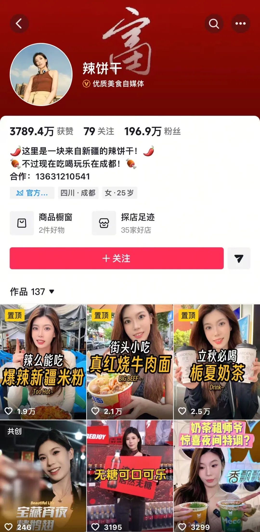 专业内容团队定制服务:除短剧艺人外,我们还与“辣饼干”(粉丝196.9万、获赞3789.4万)等垂类达人保持深度合作,聚焦美食本地化传播。同时,我们可为品牌量身定制包含rapper男团嘻哈歌曲创作、短视频剧情植入、主题直播策划在内的整合方案,从视听体验到消费引导提供一站式创意输出,强化品牌在年轻群体中的心智渗透与互动转化。