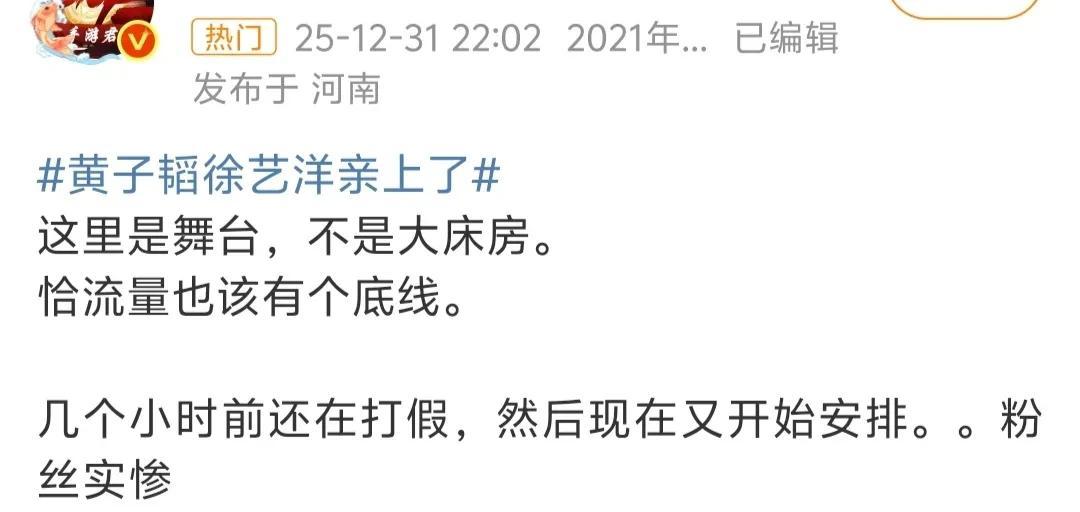 随即,“曝黄子韬徐艺洋跨年舞台激吻”讨论出圈。