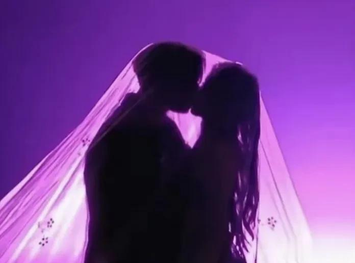 然后,两人在纱幔里,于大庭广众之下亲上了……