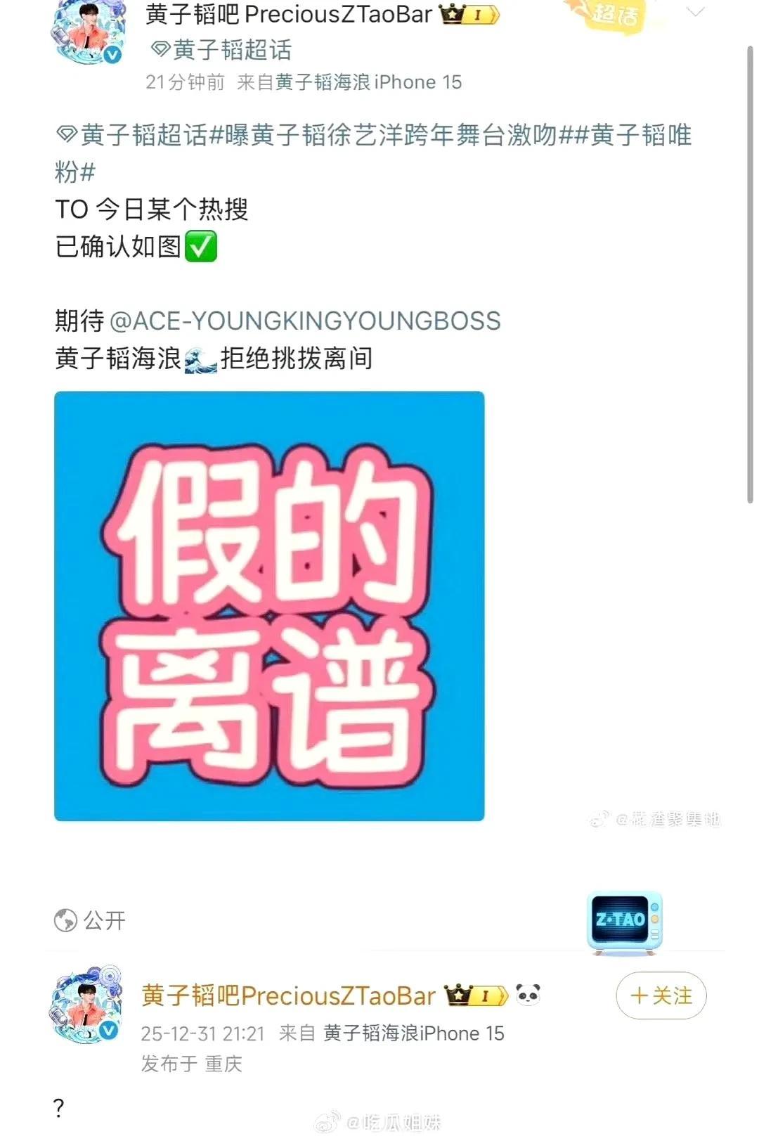 引发热议后,粉丝对接号出来辟谣,通过黄子韬那边证实进行了打假。