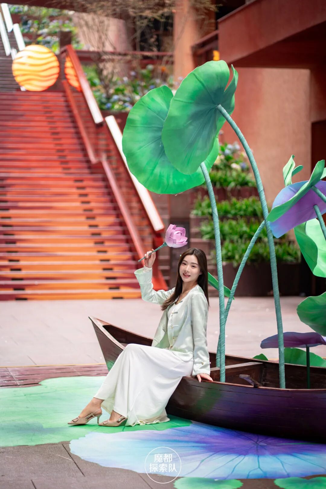 更令人惊喜的是,LG2中庭化作澄澈“荷塘”