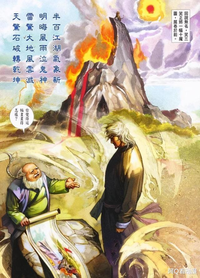 帝释天凭借两千年凤血功力,就足以在第二部前半段横着走,自称“天”。而笑三笑呢?他活了四千年,功力之深厚,完全是另一个维度的概念。这不仅仅是数字的翻倍,更是质变。漫画中对他直接出手描写极少,但这恰恰是其逼格的体现——不屑于轻易出手。他的两个儿子,大当家和大魔神,仅凭他传授的《万道森罗》与《混天四绝》就能搅动第三部风云,成为近乎无敌的BOSS。能创造出这等神功的人,其自身境界有多高,简直无法想象。可以说,直到故事完结,也未必有人能探到巅峰期笑三笑的实力底限,他属于设定上的“天花板”。