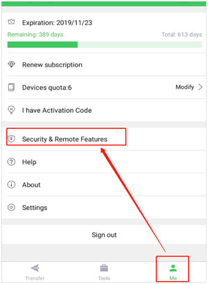 步骤 2. 进入应用程序内的“我的”部分,选择“安全和远程功能”。然后,启用“桌面通知”功能。