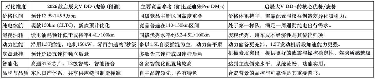 手握13-15万元预算选购插混SUV,面对比亚迪宋Pro DM-i、哈弗枭龙MAX等劲敌,2026款启辰大V DD-i虎鲸的竞争力几何?