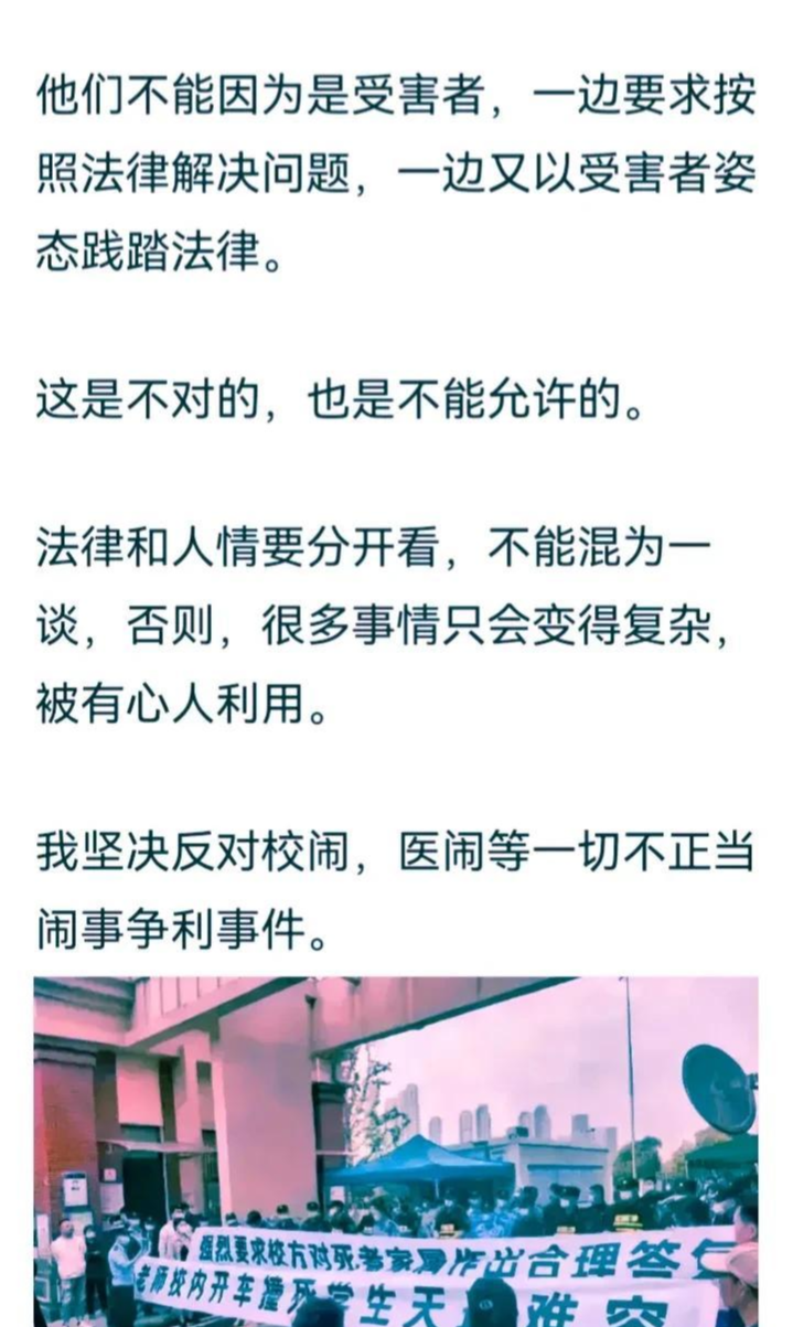 也有人说,坚决反对校闹,这是不对的,也是不能允许的;
