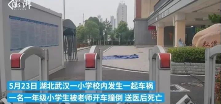5月23日,武汉汉阳区弘桥小学内一名一年级学生被一名二十多岁的老师开车碾轧,紧急送医抢救。