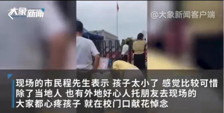 而善良的武汉市民,得知这一悲剧后,表示“孩子太小,感觉比较可惜,大家都心疼孩子”。自发购买鲜花、写下纸条,前往校门口悼念。