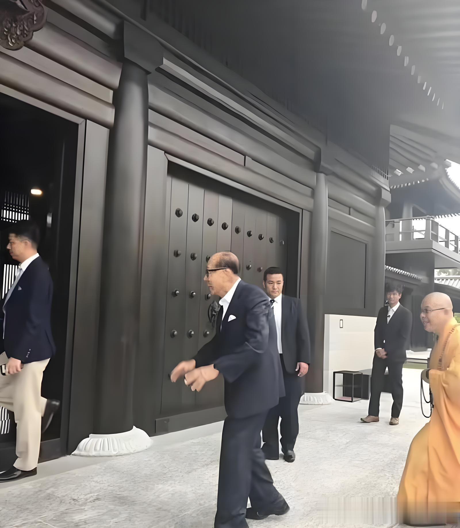 李嘉诚多次双手合十,在寺庙内虔诚祈福,并微笑着与遇见的香客们打招呼。