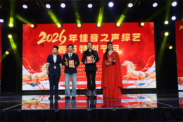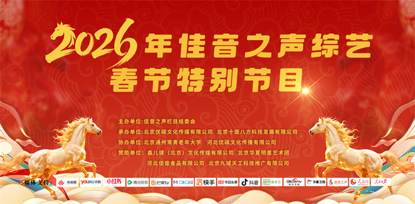 本网北京讯(郭云魁 欧阳鸿锦)近日,备受瞩目的2026年《佳音之声·综艺春节特别节目——佳音奔腾》在北京顺利完成录制。本台晚会由《佳音之声》栏目组主办,北京优硕文化传媒有限公司承办,北京十面八方科技发展有限公司联合承办,北京通州常青老年大学协办,华夏中影(北京)传媒有限公司与河北优硕文化传媒有限公司联合协办。晚会由河北佳音食品有限公司独家冠名,鑫儿健(北京)文化传媒有限公司赞助,贵州仁怀市茅台镇太和酒厂提供晚会用酒,才赋基因科技(北京)有限公司提供护肤支持。