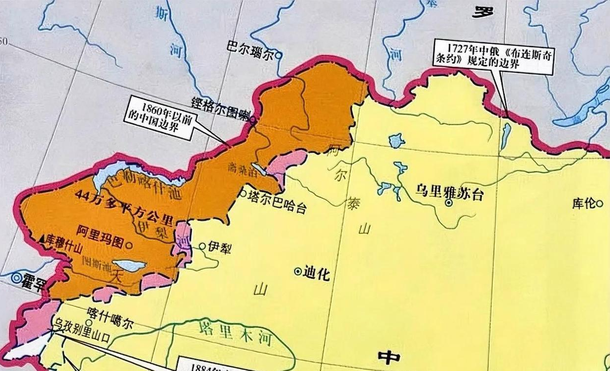 1864 年,沙俄趁回民起义、清廷无暇北顾,强逼乌里雅苏台将军明谊签订该约,以“常驻卡伦”为线,把巴尔喀什湖—斋桑泊—伊塞克湖一线 44 万平方公里一次性划走。