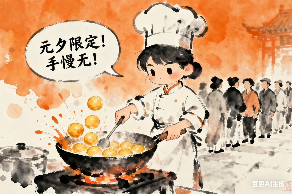 故事:他擅长做“节日限定美食”,比如正月十五的“油锤”(炸元宵),连百姓都排队买。