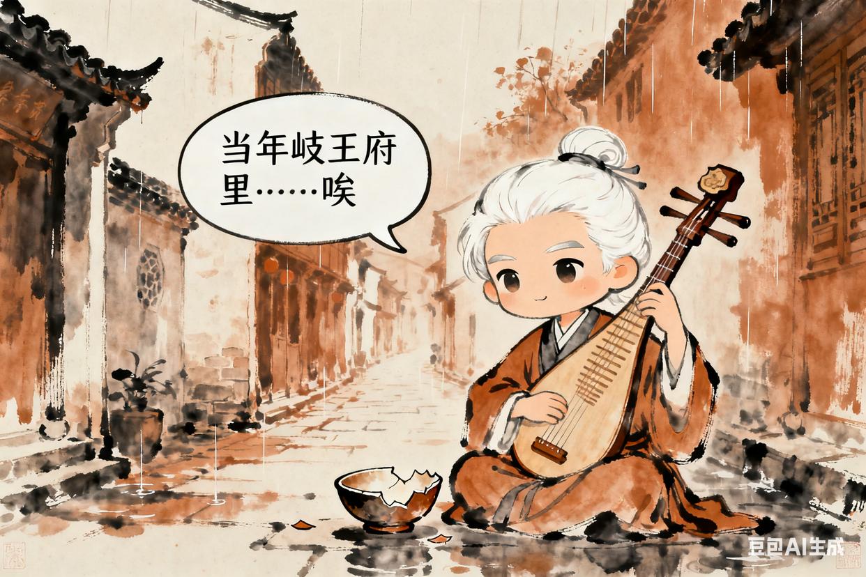 故事:他曾是玄宗最爱的乐师,安史之乱后流落江南,靠卖唱为生。杜甫见他时,他已是白发老人,只能“闲坐说玄宗”。
