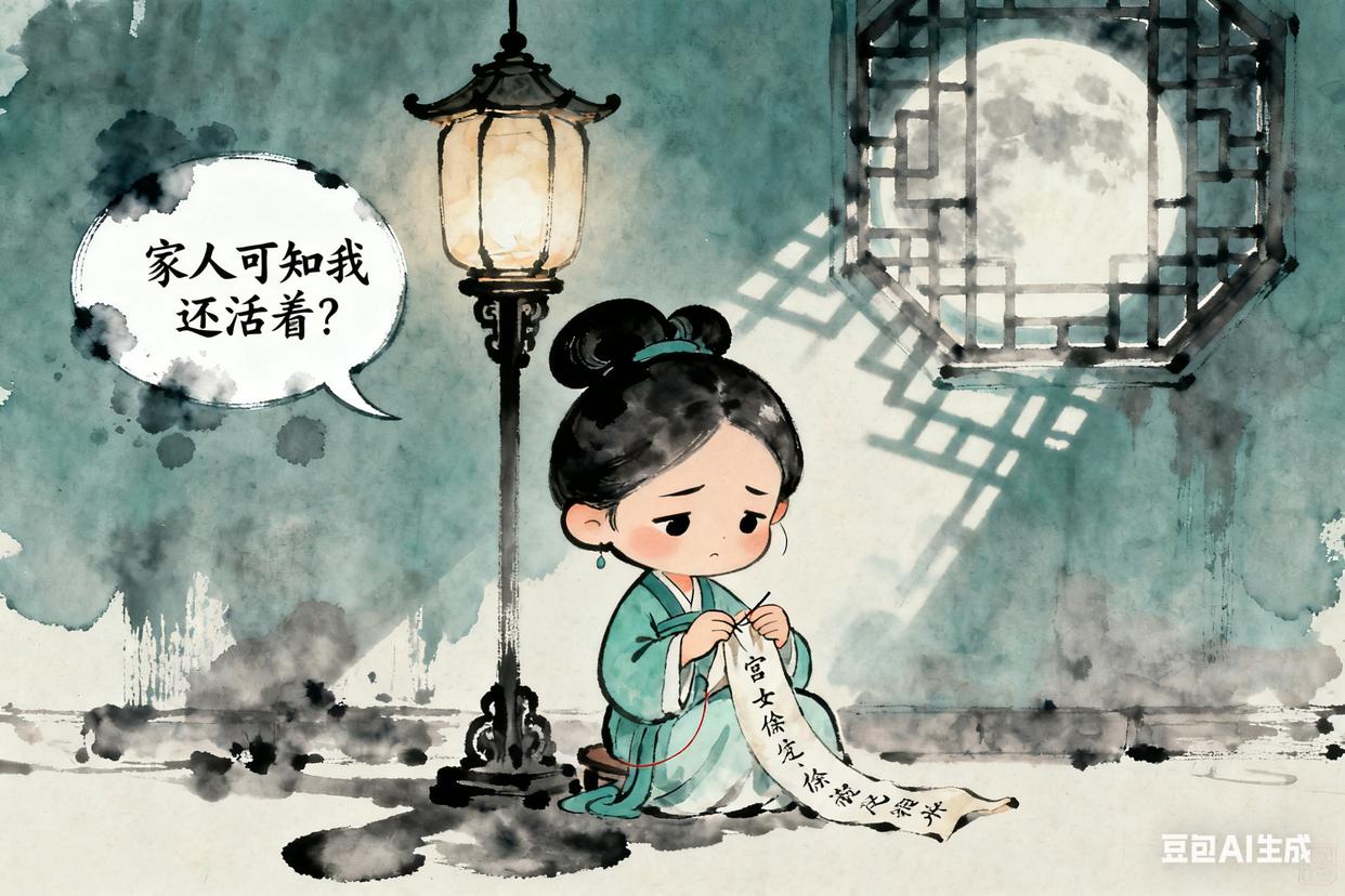 细节:她把诗缝在旧衣服里,托人带出宫,希望家人知道她还活着。