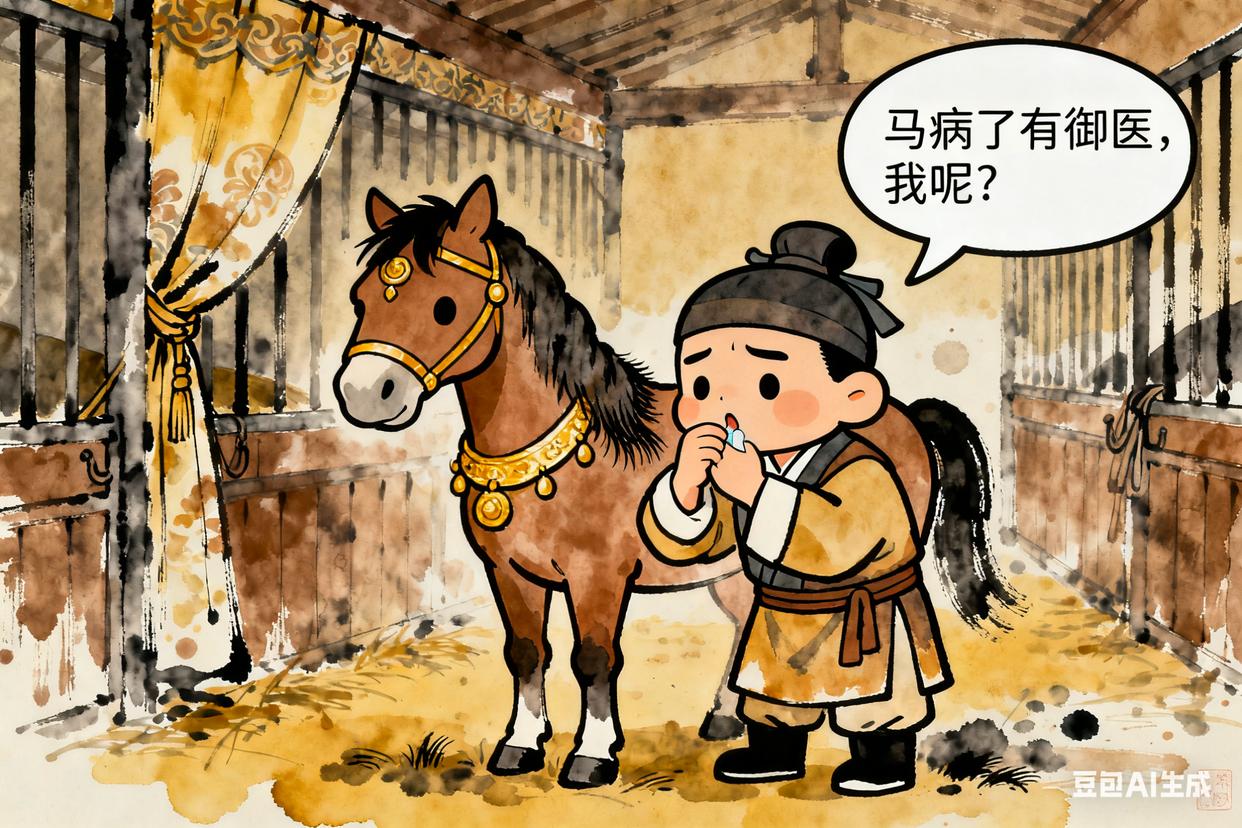 故事:他负责养杨贵妃的“舞马”,马比人精贵,他病了没人管,马病了御医来看。