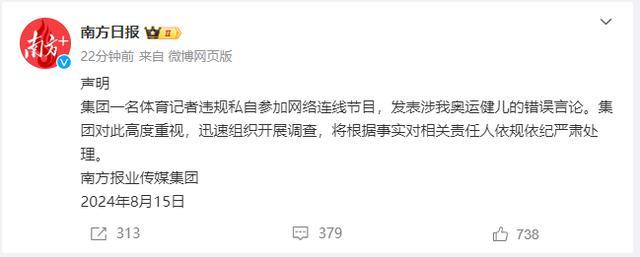 面对舆论的强烈反响,南方日报迅速作出反应,发表声明表示将严肃处理此事,以正视听。