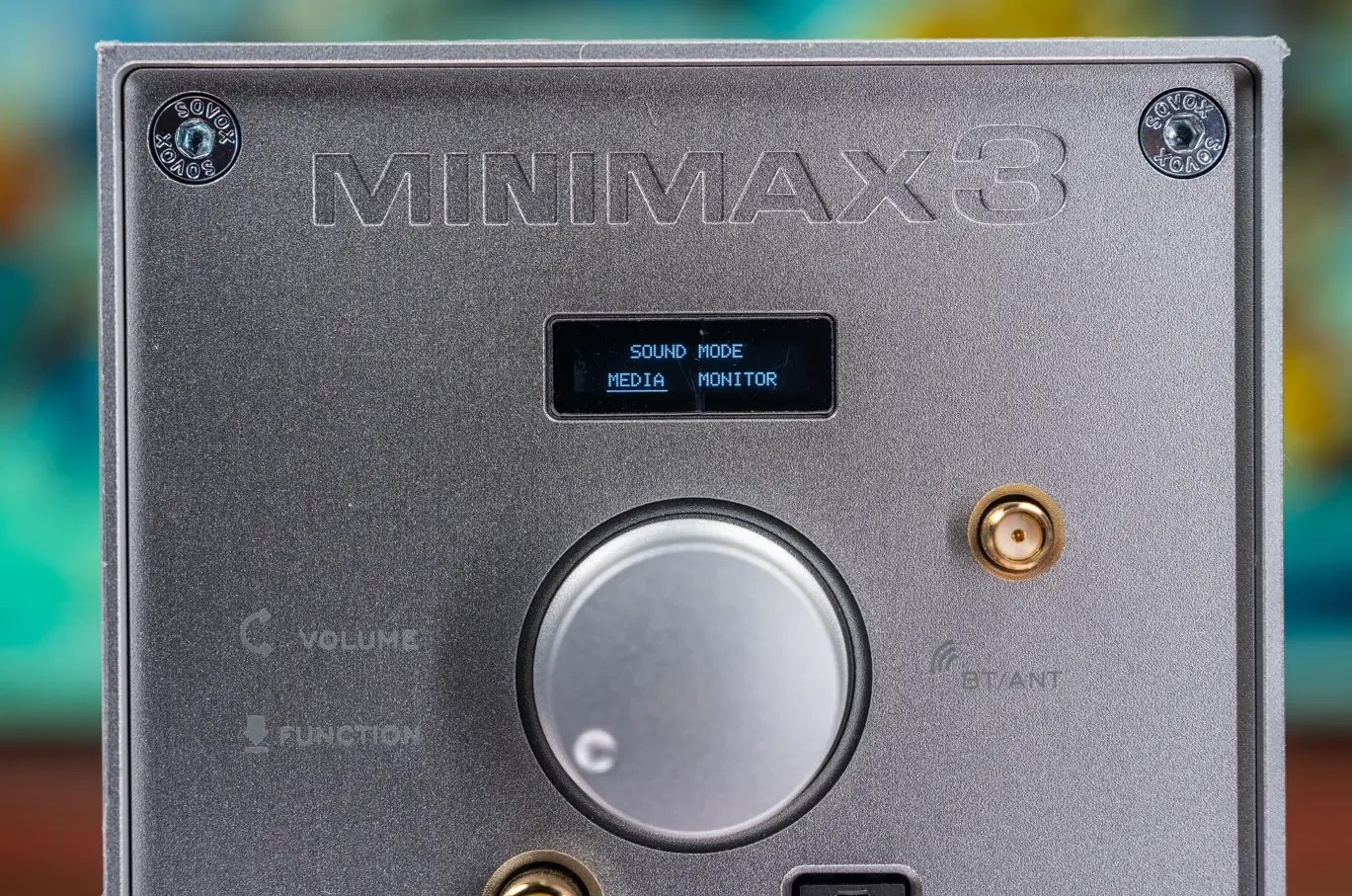 同时MiniMax3还提供“Media”(媒体)与“Monitor”(监听)双声音模式。一键切换,即可在享受电影、游戏时的澎湃震撼,与专注音乐细节时的冷静精准之间自由选择。另外,MiniMax3还可以进行听感微调,可对2kHz以上高频进行+2dB/0/-2dB三档微调和200Hz以下低频设置平直/-2dB/-4dB三档衰减,提升音乐的晶莹度、解决小房间低音轰鸣问题,让听感清爽不闷,节奏干净利落。