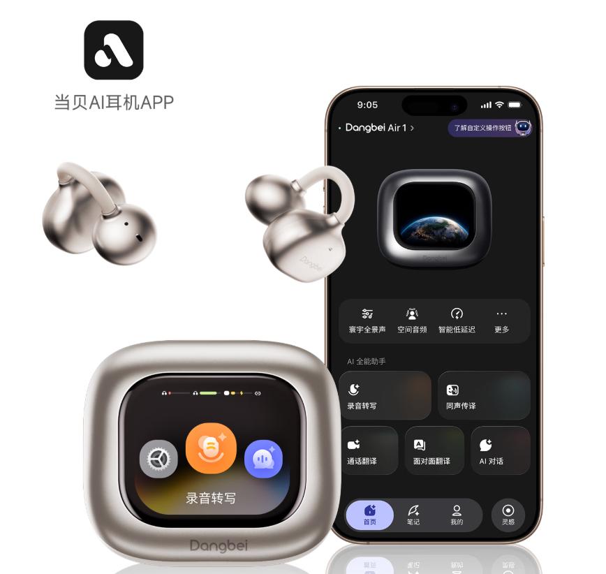 当贝 Air1 被誉为智能天花板,它首创了 2.04 英寸 AMOLED 屏,集成了 AI 翻译、会议纪要生成等功能,为商务人士和跨国旅游提供了极大的便利。在音质方面,耳机配备了 12mm 双单元,并获得了 Hi - Res 金标认证,能够提供卓越的音质表现。同时,采用 Ag 银离子抗菌材质,提升了健康属性,是高端商务场景的理想选择。