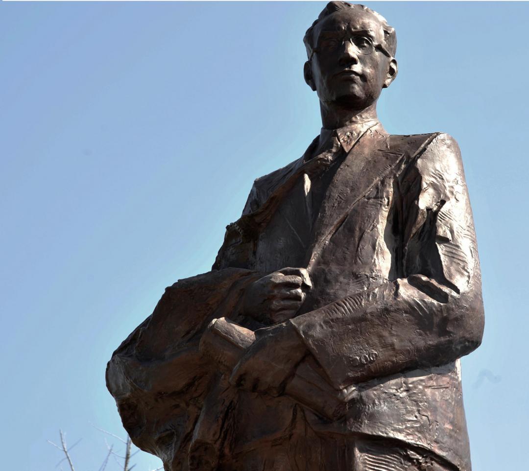 青年邹韬奋铜像,立于江西余江县韬奋广场