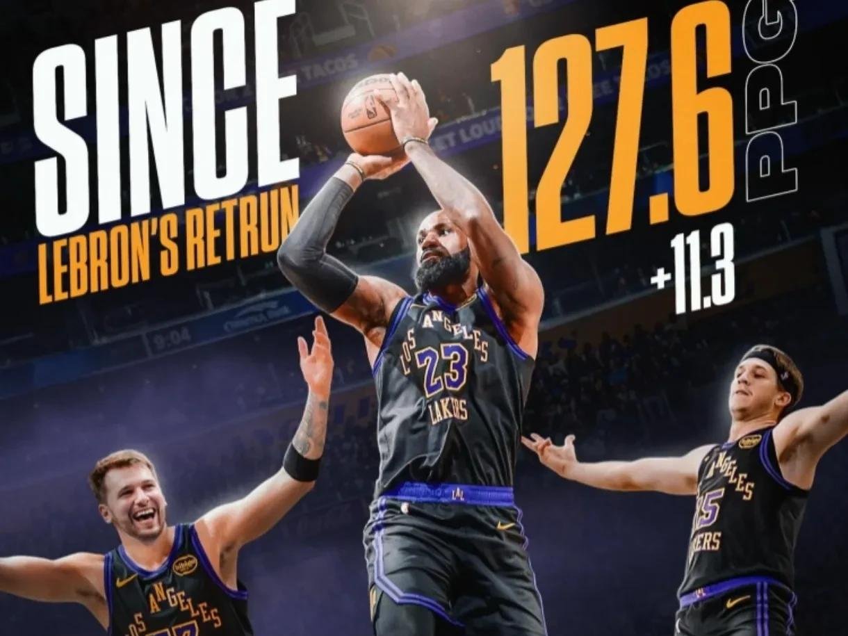 不过话说回来,詹姆斯对球队的作用不能只看个人数据。他复出前,湖人场均116.3分;他回来后,场均127.6分!多了整整11.3分!这说明什么?说明他能带动整个球队。至于性价比嘛,现在还不好说,毕竟才打了3场比赛。