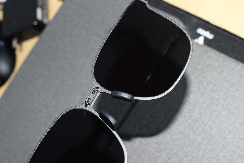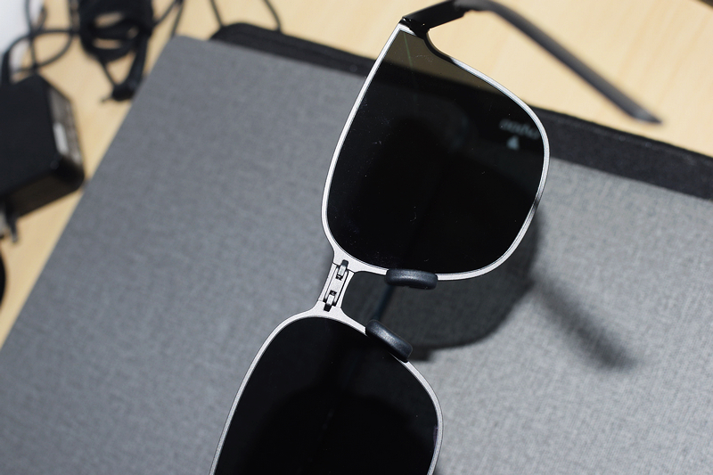 最让我惊喜的是那些"偷偷努力"的细节。折叠起来比AirPods还苗条,塞进牛仔裤迷你口袋毫无压力,以前带普通太阳镜总要背大包的我终于翻身做主人!镜腿折叠时像在玩解压玩具,"咔嗒"一声丝滑得让人上瘾,无螺丝铰链设计彻底治好了我的强迫症——再也不用担心螺丝松动镜腿乱晃了!戴着它骑共享单车狂奔三公里,居然稳稳当当,鼻托上的防滑纹路简直是人类之光,出汗也不往下出溜。