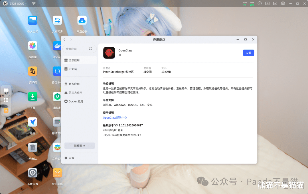 最后案例其实非常多,但不管你看到别人的龙虾多么只能多么好用,最关键的还是动起来。极空间的部署教程熊猫也发过,同时极空间官方甚至将Openclaw直接引入了应用商店,动手安装配置之后就能使用了,还不快动起来?如看不懂教程,有远程部署需求,可加星球有偿提供