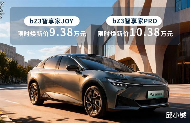 最近一汽丰田举办智电bZ双车焕新发布会,让人看到更具竞争力的纯电双子星阵容,当然也不希望别人再说自己造的是杂牌电车了。bZ3虽说2023年时就已经上市,但当时丰田对这款车期望值拉得很高,甚至对标特斯拉Model 3,当时指导价16.98万元起。而现在最新上市的bZ3智享家,官方售价直接砍到了9.38万元起,几乎是当年价格的一半,而且官方还给到用户4000元购置税补贴或者“5免2”低息金融方案,进一步减轻了消费者的资金压力。