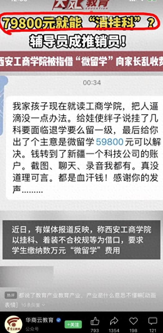 新闻媒体的报道中,引用了几位家长的原话,他们都提到了辅导员告诉自己,“如果不想留级或退学,就要缴纳79800元参加微留学项目”。