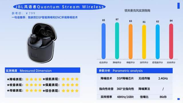 JBL风语者Quantum Stream Wireless主打科技感与专业收音,适配高端创作场景。支持48KHz/24Bit采样,全指向性电容咪头,声音清晰饱满,细节丰富,能精准捕捉人声,适合影视制作、直播等。内置量子降噪技术,可智能过滤环境杂音,同时保留需要的环境音,收音自然真实。