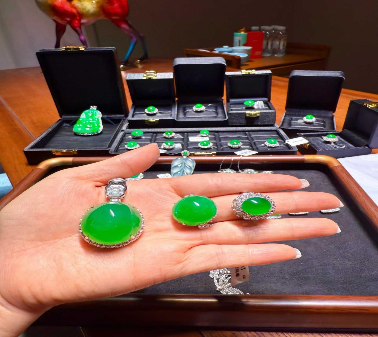 品类覆盖:高端定制首饰、收藏级帝王绿 / 阳绿翡翠、大型摆件 保障服务:私人定制、藏品评估、专属包装配送