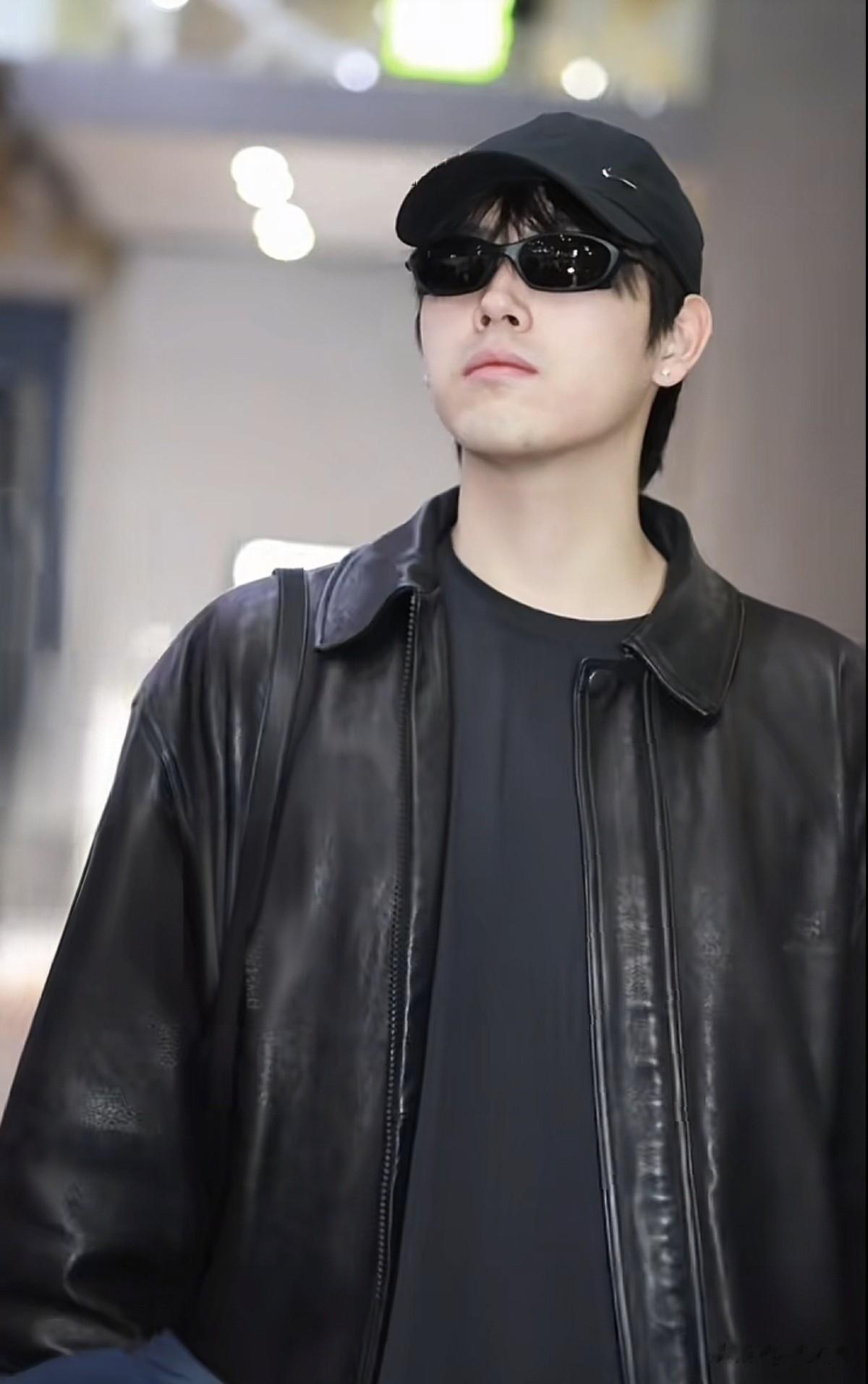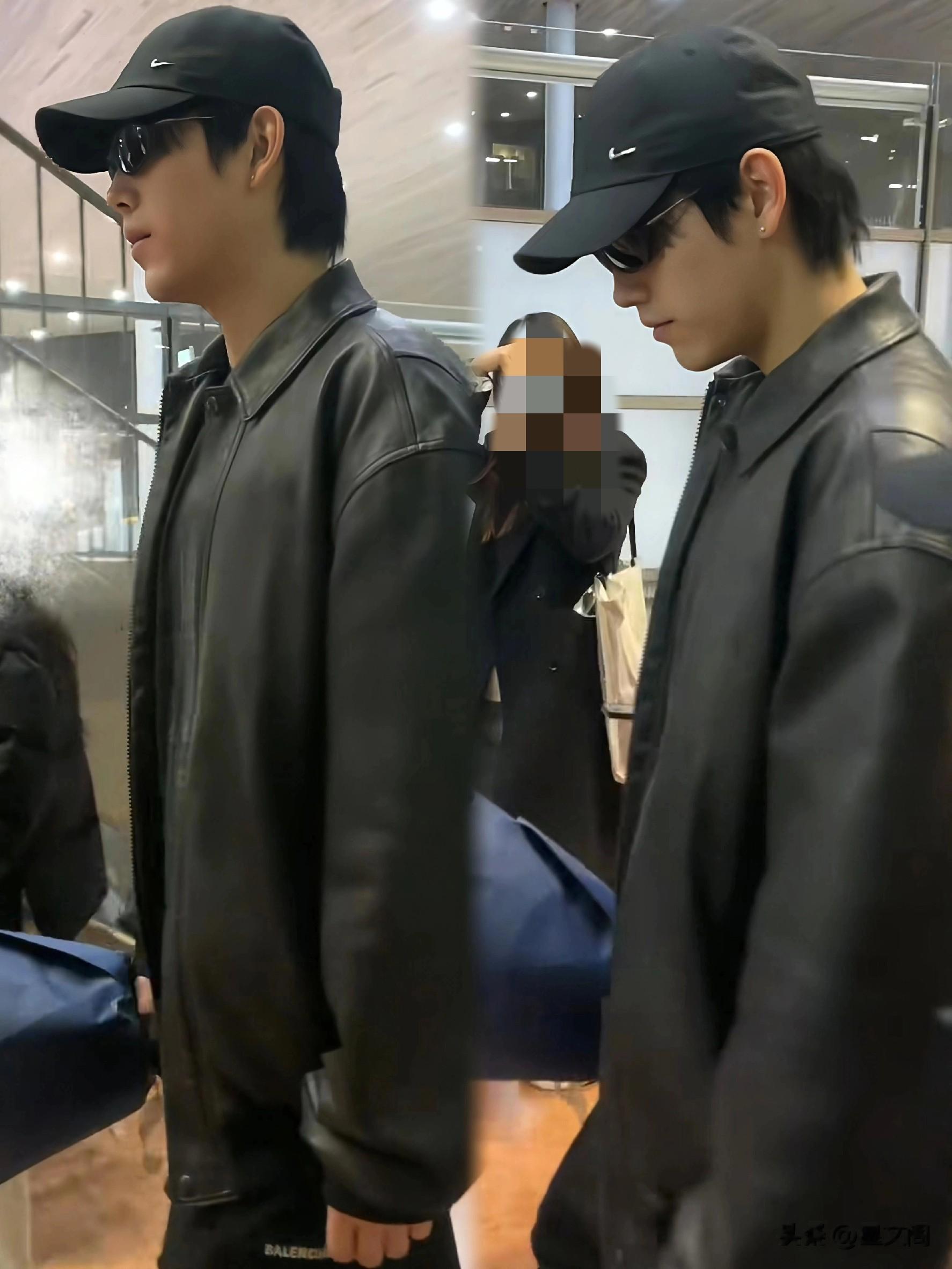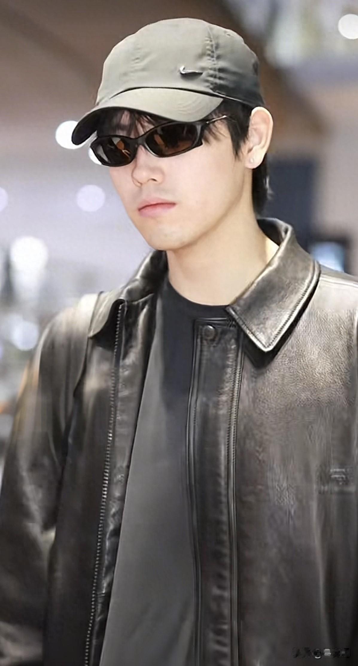 他头戴棒球帽一身皮衣酷帅拉风,高高大大的走在航站楼浑身散发贵族气质!