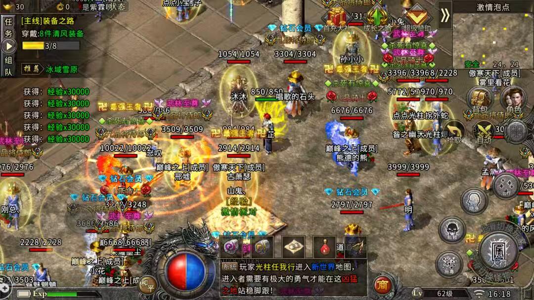 冰雪宫殿,以前是硬刚。现在你可以:战士冲锋破防→切法师暴风雪控场→道士召唤神兽堵门。一套连招,BOSS连动都动不了。