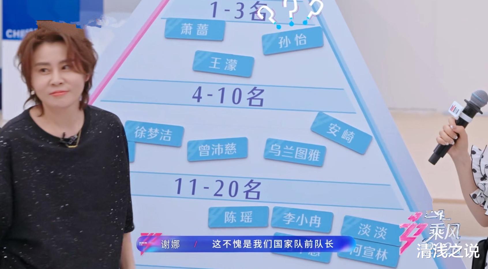 一公结束后,节目组让姐姐们预测自己的排名,把名字贴到相对应的排名区域。大部分姐姐或是出于谦虚或是自知人气不高或怕预测太高被笑话,都把名字贴在21到31名的区域。王濛则紧随萧蔷之后,把名字贴到1到3名区域,还顺带把孙怡名字贴到前三名。谢娜说这不愧是我们国家队前队长,王濛也不心虚。