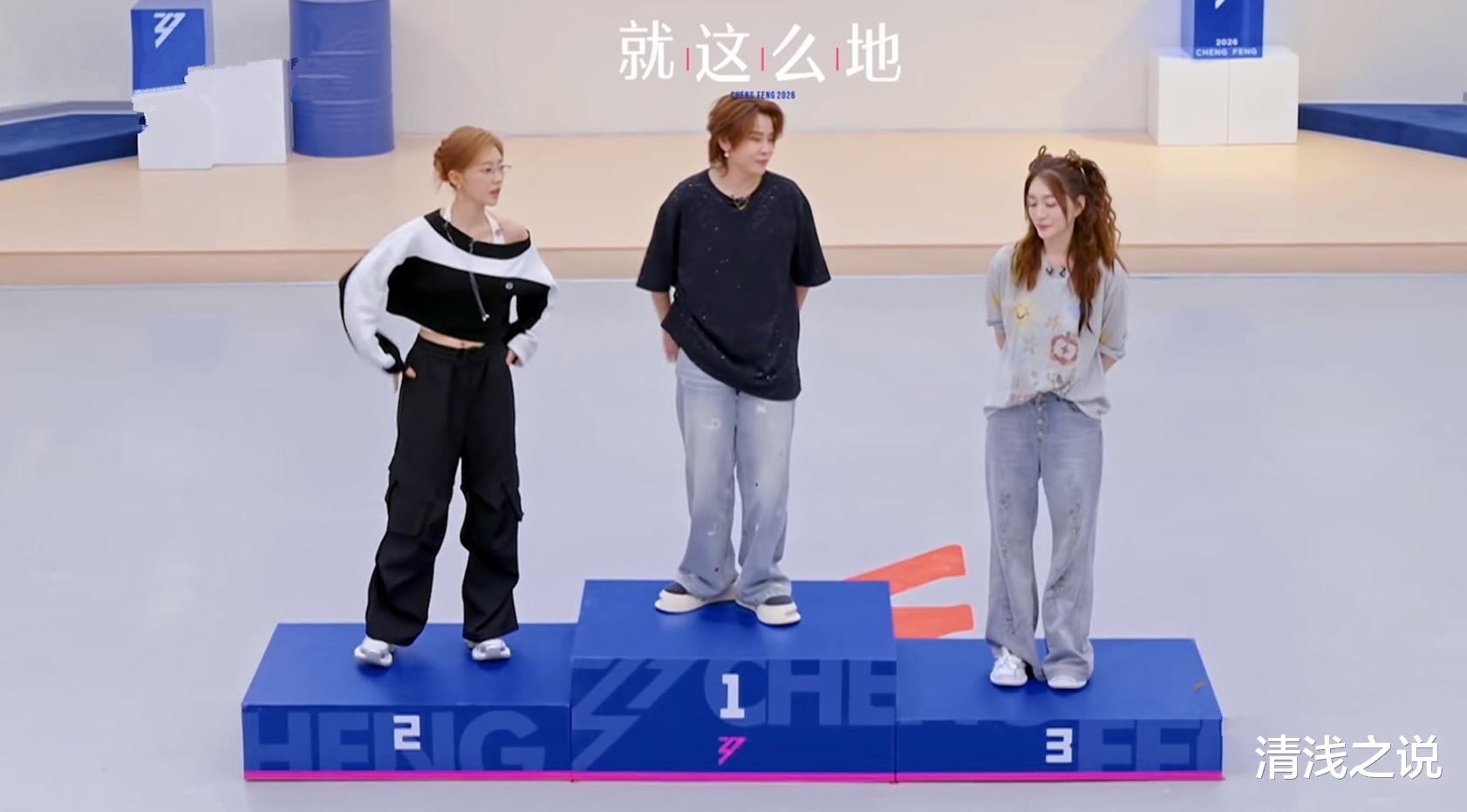 确定前三是李小冉、张月、王濛后,节目组又让她们三个自行预测排名,预测正确大屏幕就会显示乘风海报。李小冉、张月都不敢往第一名奖台站,都让王濛站。王濛站上去后可能预感第一不是自己,就说按年龄走,李小冉岁数最大,她站在第一位置上。李小冉却说要是按照年龄来她会站那里,但不是按照年龄,坚持让王濛站第一。王濛也不磨叽了,很自然地站在最高领奖台。张月则站第二,李小冉站第三。提示不对后,李小冉跟张月换位置。仍不对后,王濛让张月站第一,她站第二,李小冉站第三,但仍提示错误。于是,李小冉站在第一,王濛站在第二,张月站在第三。依旧错误后,王濛和张月对换位置才对了。