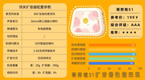 4、塔努啦S1无线领夹扩音器塔努啦S1无线领夹扩音器凭借靠谱的性能表现与简约利落的外观设计,正收获越来越多用户的关注。它搭载车规级降噪技术与DSP防啸叫算法,即便身处嘈杂环境,也能让声音保持清晰洪亮,有效隔绝啸叫干扰与背景杂音。无论是小型会议、课堂培训还是户外讲解场景,S1都能输出自然舒适的音效。无线领夹式设计让扩音操作更便捷,助力提升语音表达效果。麦克风续航6小时、扩音器续航20小时,足以覆盖日常多数使用需求,搭配快速充电功能,短时间即可补能,适配长时间使用场景。同时配备多类接口,支持TF卡、U盘及AUX设备连接,进一步拓宽了多场景适用范围。