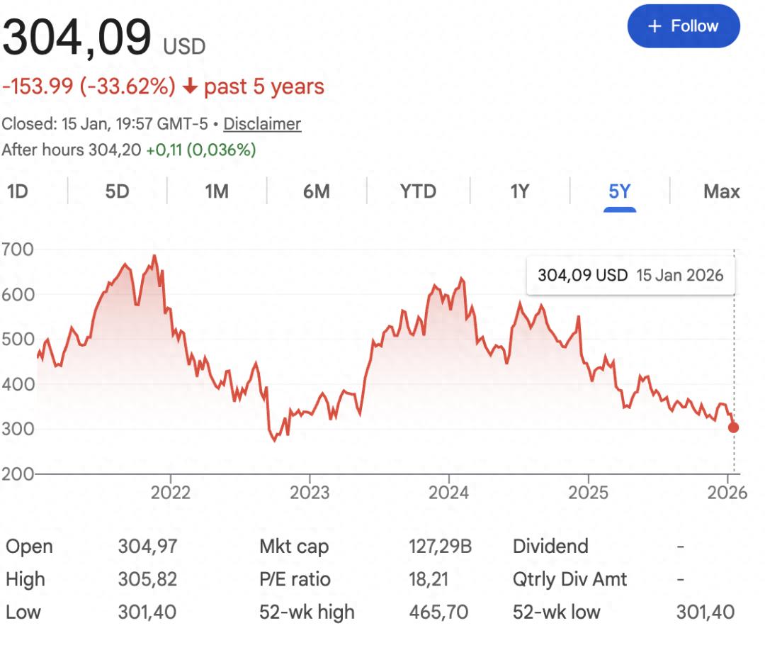 Jefferies 在 1 月初的下调更是点明了问题核心:从 2023 财年至今,Adobe 的营收增速一直在放缓,AI 带来的贡献“尚未在财务数据中体现”。KeyBanc 则将目标价直接设定为 310 美元,并明确表示,竞争压力将持续压制 Adobe 的股价表现。