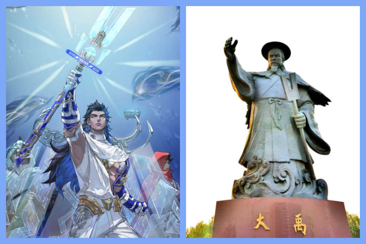 从上面的故事里可以看到:历史上的大禹“治水”,王者世界里的大禹是治理“天界紊流”,这里并非是简单的重名,每个世界里大禹都选择守护一方安宁。在王者的故事里大禹作为神职者,自身却有着人类的身份。在不同的“灾难纪元”里,当每个文明面临灾难时,他都会以“治水者”的身份降临。