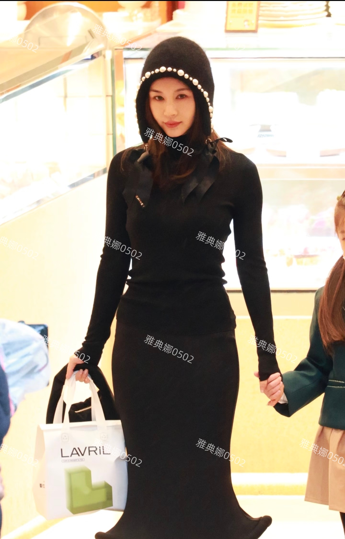 宁波街头偶遇王子文在拍戏,她带了一款有珍珠蝴蝶结元素的黑色帽子,毛茸茸的洋气可爱又减龄。