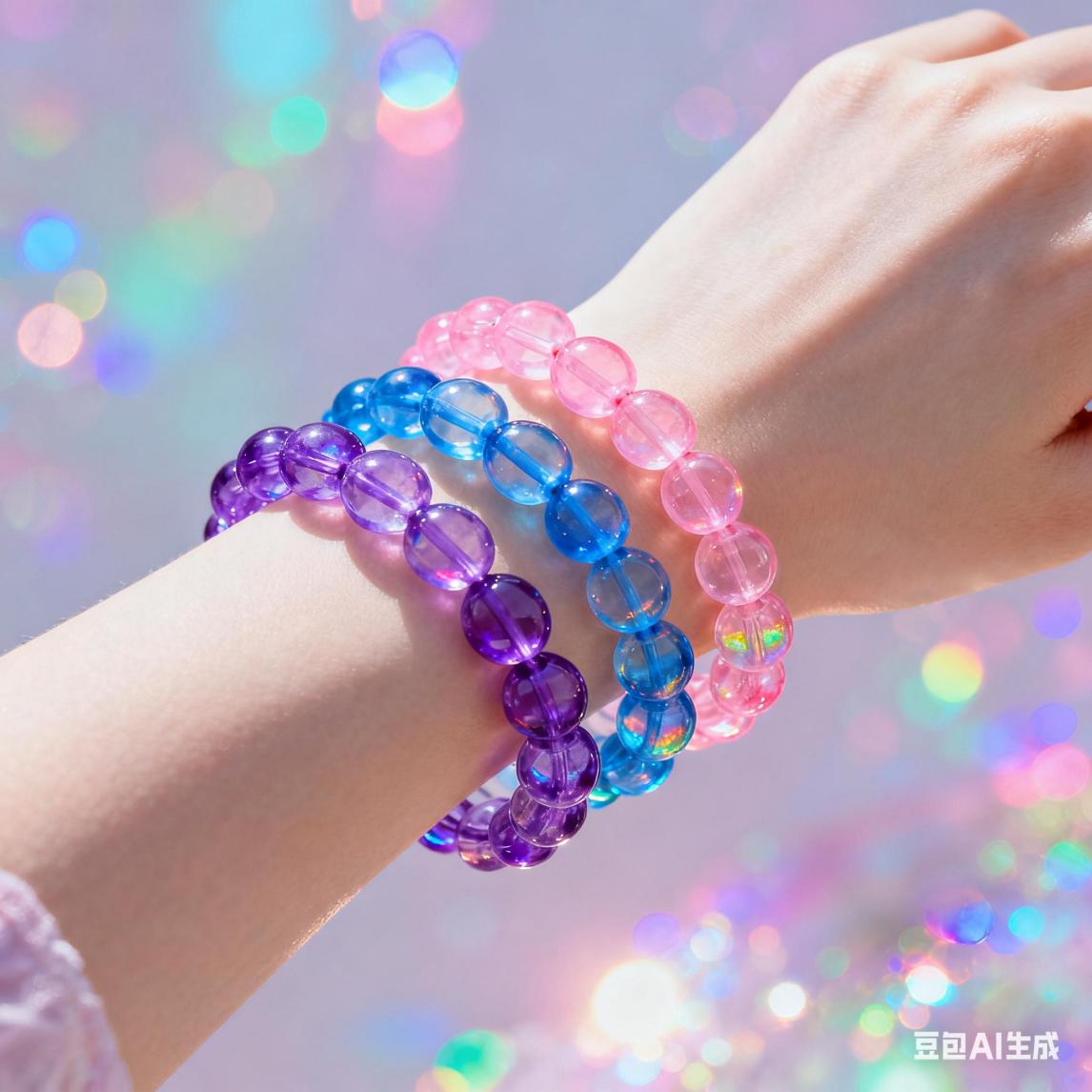 叠戴技巧:层次感满满叠戴是打造个性手串的又一妙招,能让你的手腕瞬间成为时尚焦点。不同颜色的琉璃手串叠戴,就像打翻了调色盘,绚丽多彩。比如将粉色琉璃手串、蓝色琉璃手串和紫色琉璃手串依次叠戴,色彩渐变,层次感十足,展现出满满的少女心 。