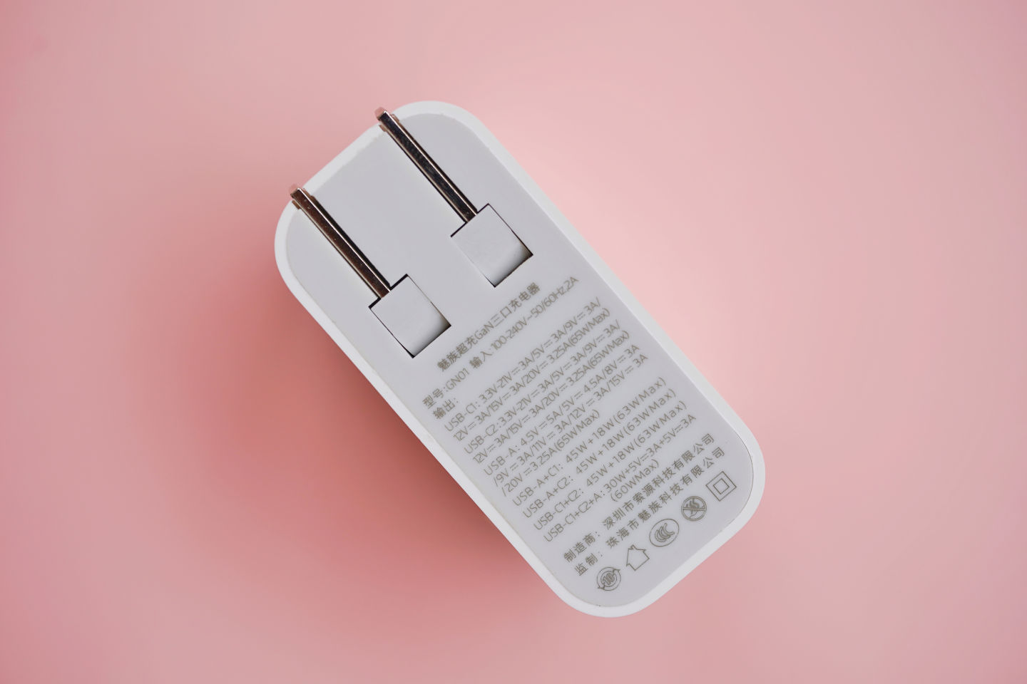 充电头底部印有每一个接口支持快充功率以及组合使用功率大小;充电头插头支持折回,金属插头不能折回的充电头真的不适合外出携带。