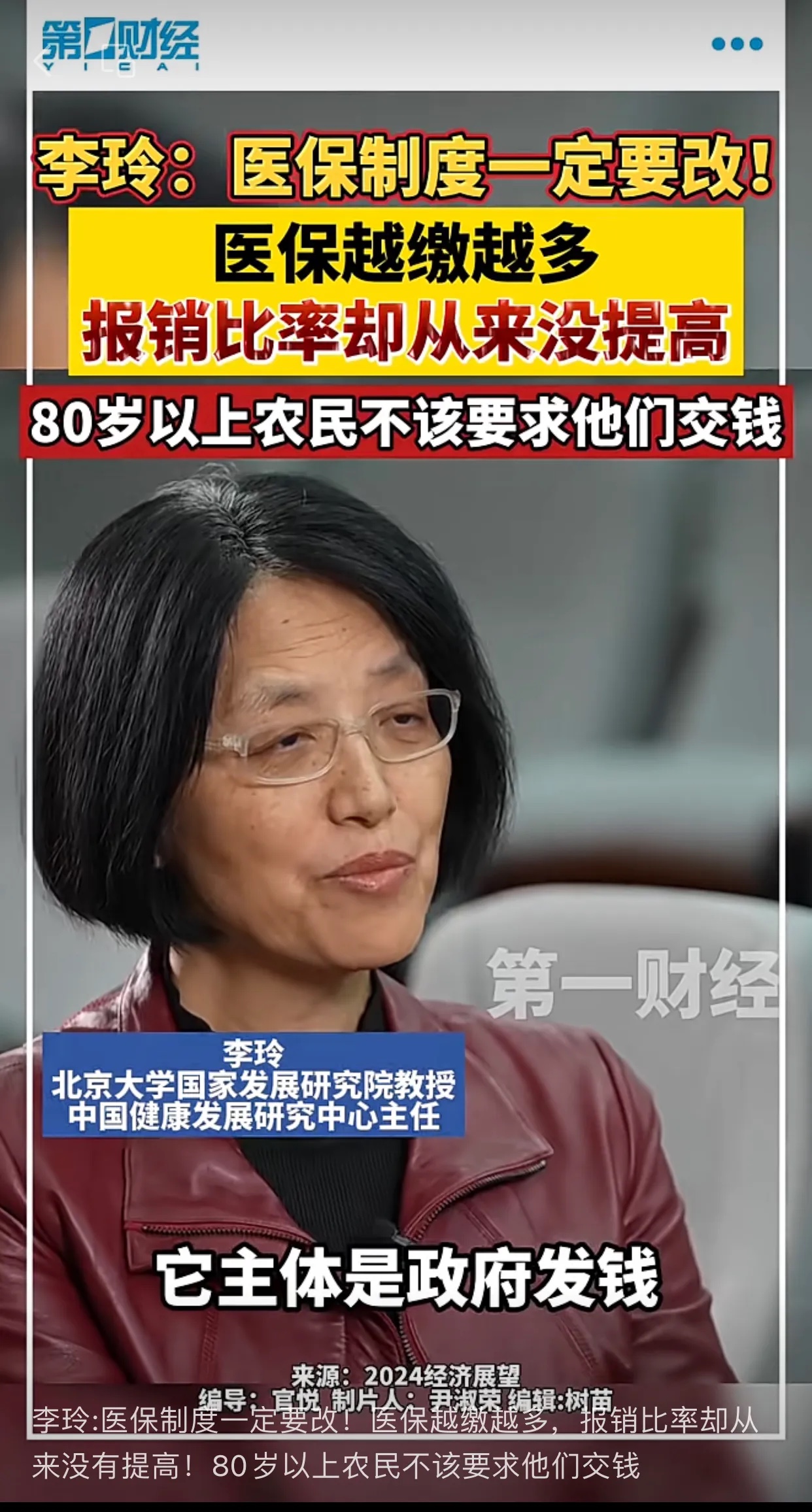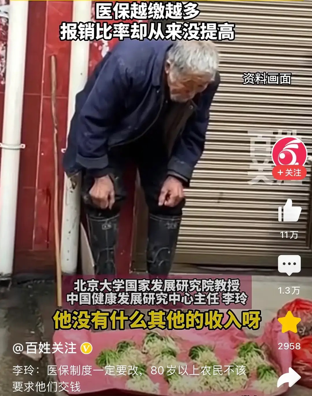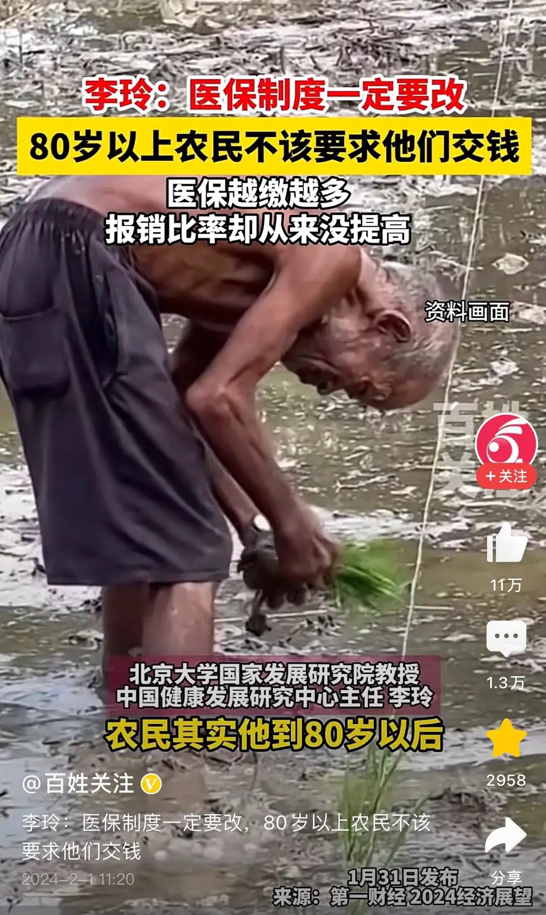 不过有句话李教授说错了,80岁的老人不用交医保!