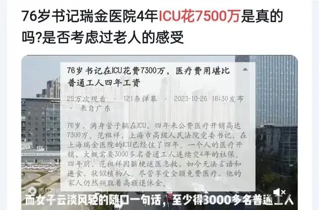 去年的时候就有新闻报道过,上海一名厅级干部住高干病房四年时间花了7500万的医疗费用。